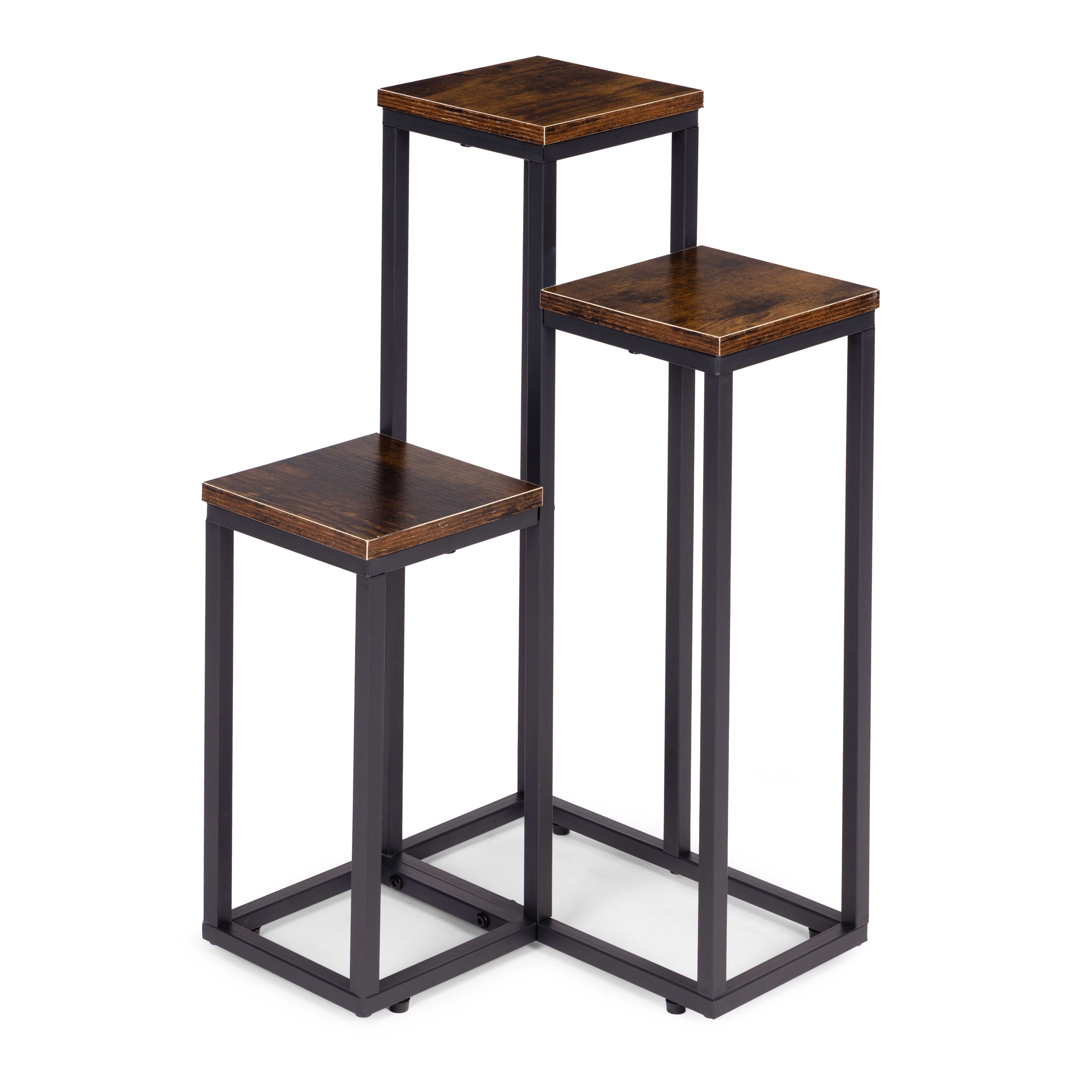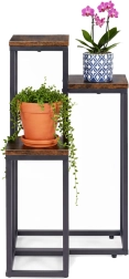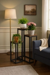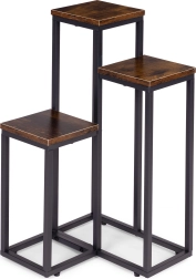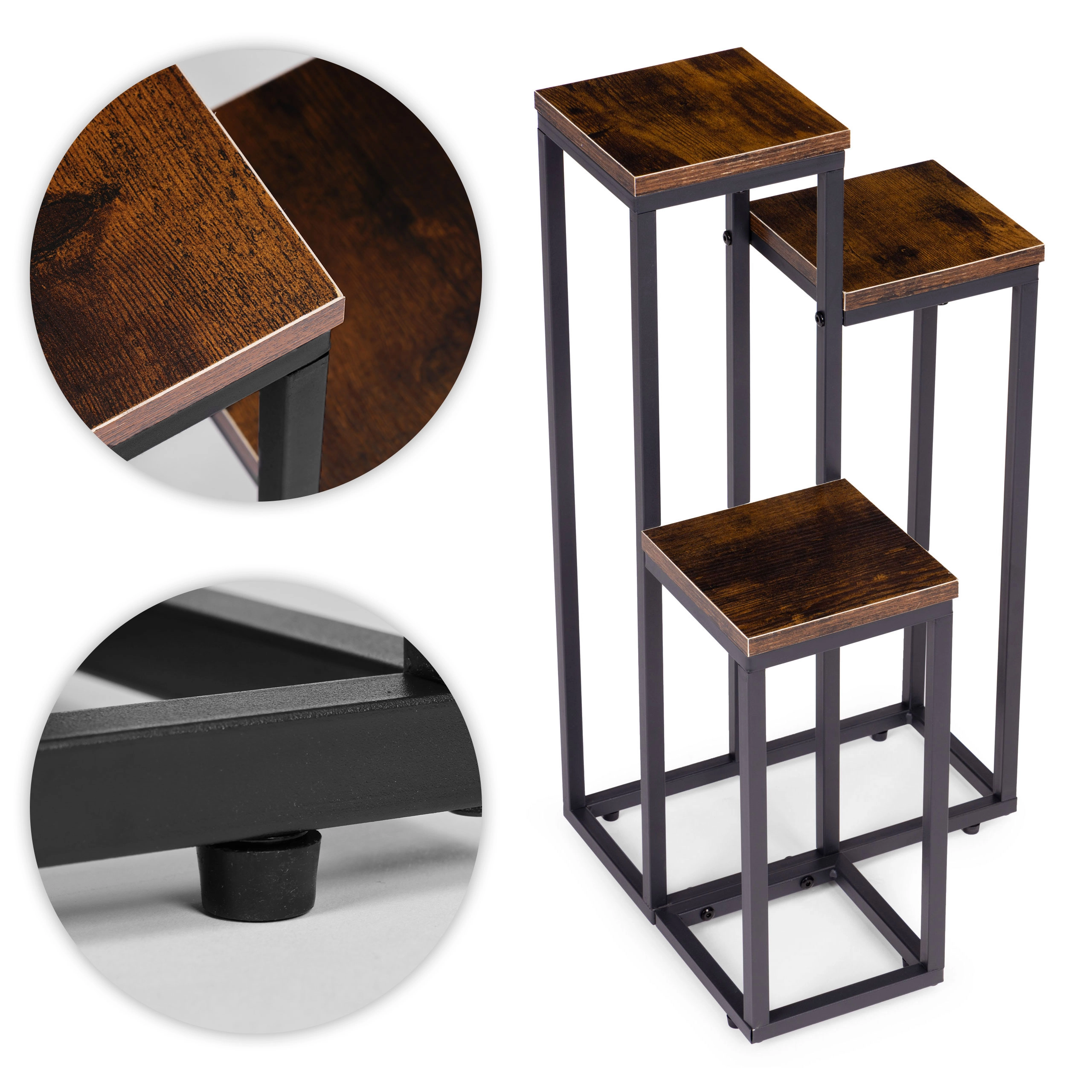 Rammen af pulverlakeret stål modstår korrosion og mekanisk slid, mens hylder i naturlig trædekor understreger det moderne loft-look. Skridsikre fødder øger stabiliteten og beskytter gulvet mod ridser. En maksimal bæreevne på 5 kg er ideel til de fleste urtepotteskjulere og dekorationer.