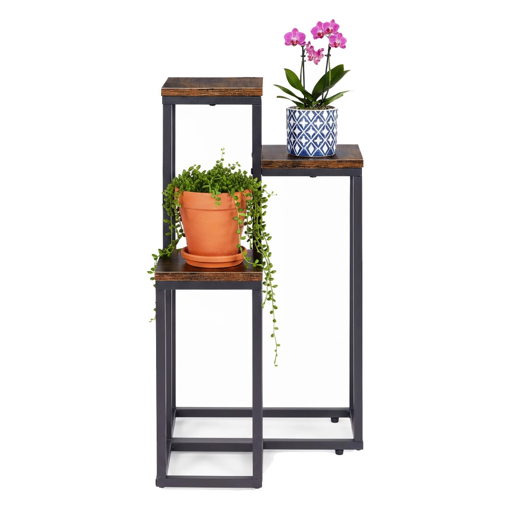 Vis dine yndlingsstueplanter stilfuldt og overskueligt. Den loft-inspirerede planteholder kombinerer et industrielt udtryk med en praktisk løsning til hverdagsbrug – tre højdegraduerede hylder gør pleje af planter lettere, forbedrer lysadgangen og gør indretningen mere hyggelig. Takket være de universelle mål passer den i stuen, arbejdsværelset, entréen og i køkkenet til krydderurter.