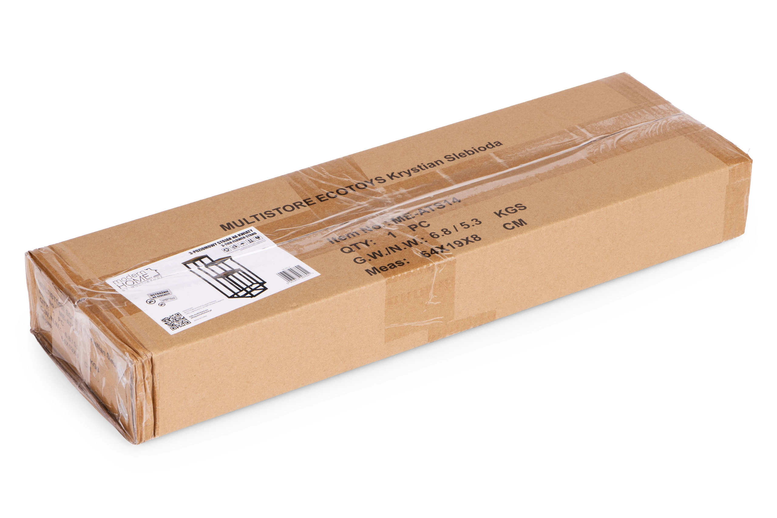 Rammen i pulverlakeret stål er robust og modstandsdygtig over for korrosion, og hylder i trædekor er lette at rengøre. Et ideelt valg til langvarig brug i moderne interiører.