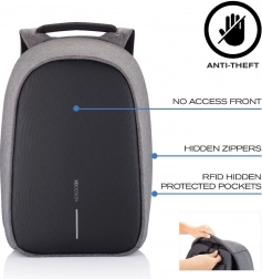 BOBBY Hero Small er en moderne byrygsæk designet til maksimal sikkerhed og komfort. Hovedrummet åbnes udelukkende fra bagsiden, skjulte lynlåse og lommer med RFID-beskyttelse beskytter dine værdigenstande, mens skærefast konstruktion og vandafvisende RPET-materialer sikkert modstår hverdagens pendling og rejser.