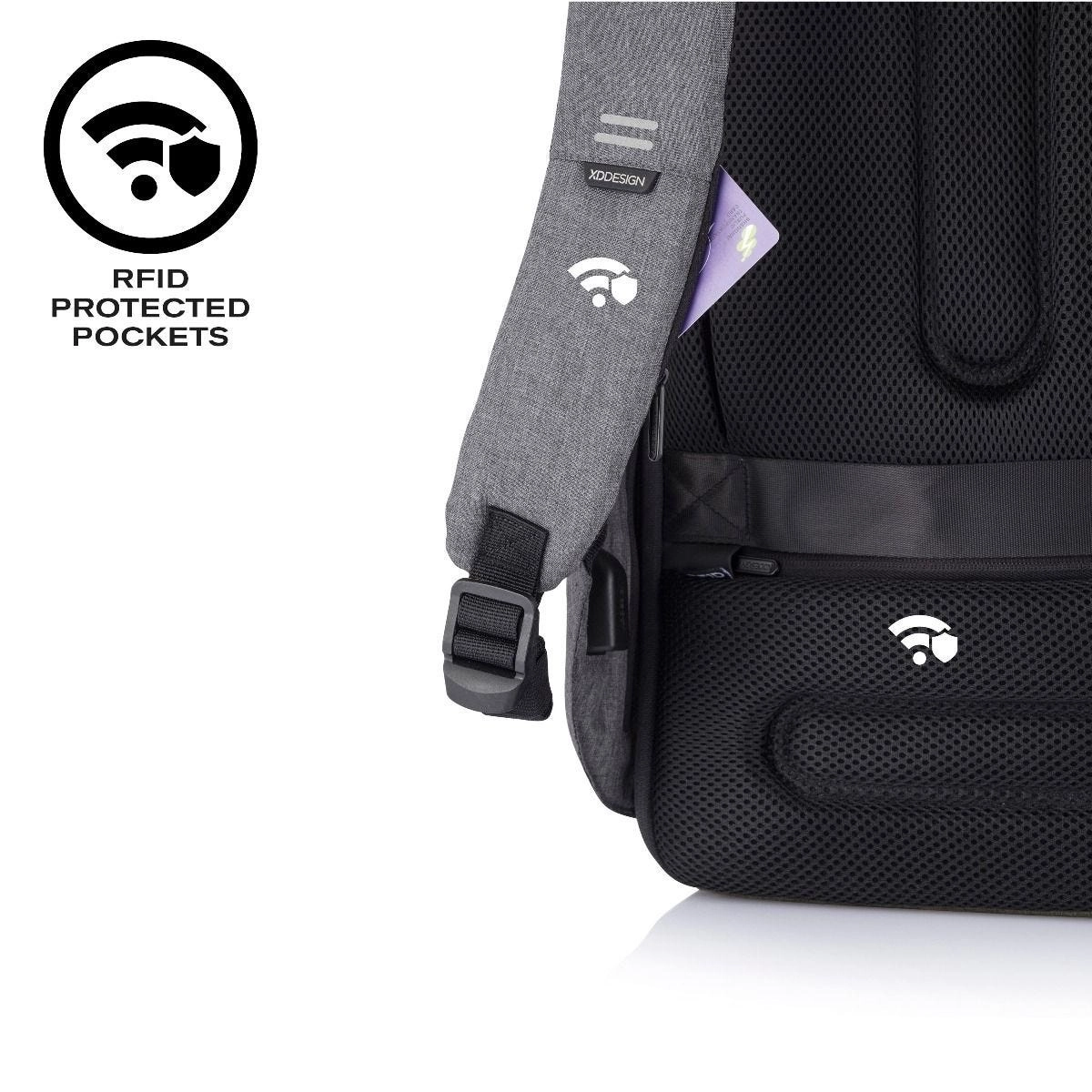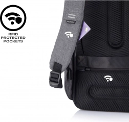 Hovedrummet åbnes kun fra bagsiden, og skjulte lynlåse samt lommer med RFID-beskyttelse sikrer dine dokumenter, kort og pung på rejser og i offentlig transport.