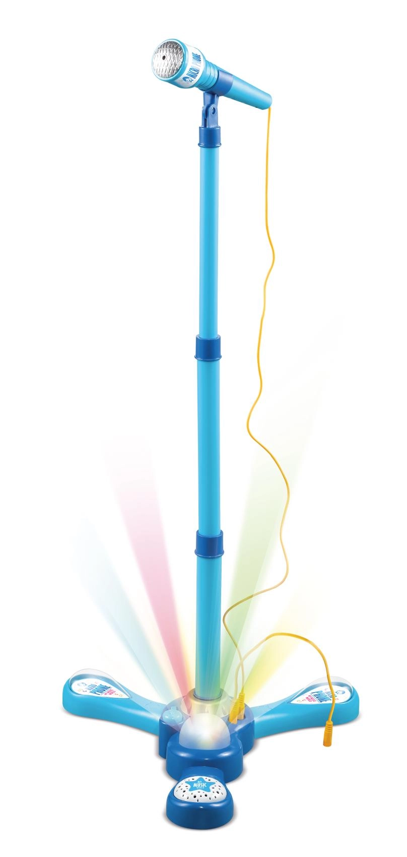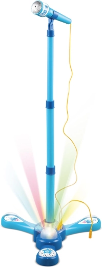 Sjov børne- karaoke-mikrofon med stativ, der bringer farverige lyseffekter, 12 indbyggede sange og mulighed for tilslutning af MP3 eller mobil til enhver fest. Takket være den justerbare højde på 40–80 cm vokser den med børnene og styrker både selvtillid og kærlighed til musik.