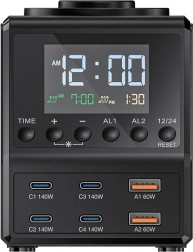 BlitzWolf BW-FW10 kombinerer funktionerne fra et moderne vækkeur med en avanceret 10‑i‑1 ladestation. Oplader op til 8 enheder samtidig takket være fire USB‑C-porte, to USB‑A-porte og to trådløse opladningsflader. Den maksimale effekt på 240 W og support for PD 3.1 (op til 140 W), PPS, QC 4.0 sikrer hurtig og effektiv energi til telefoner, tablets, bærbare og konsoller.