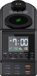 Stilfuldt vækkeur og kraftig ladestation i ét. BlitzWolf BW-FW10 leverer op til 240 W, 6 porte (4× USB‑C, 2× USB‑A) og 2 trådløse zoner (15 W til telefon, 5 W til ur). Understøtter hurtigopladning PD 3.1, PPS og QC 4.0, klarer bærbare computere inklusive MacBook Pro 16 og muliggør dobbelt alarm med overskueligt LED-display. Der er også flerniveaubeskyttelse for sikker opladning.