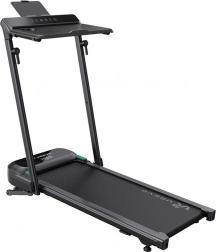For smart præstationssporing synkroniseres båndet med Apple Health og Google Fit: det overvåger skridt, distance, forbrændte kalorier, tempo og aktivitetstid. 12-punkts affjedring (silicone-dæmpere, affjedret plade og stabile 4-punkts støtter) absorberer stød og reducerer vibrationer. Der er smarte tilstande LIIT, MIIT og HIIT for mere effektiv forbrænding samt automatisk hældning op til 9 % for mere varieret træning.