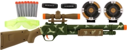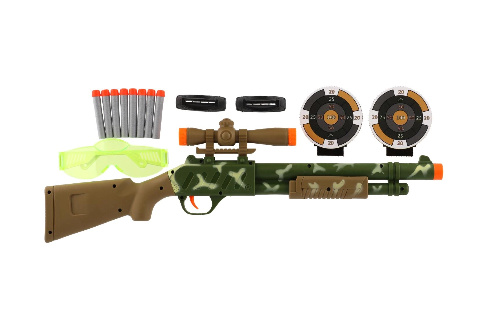Pakken indeholder alt, hvad du behøver for at komme i gang: 8 skumkugler til skånsom og sikker skydning samt beskyttelsesbriller for øget sikkerhed under actionfyldt leg. Geværet har en praktisk længde på 51 cm, som ligger godt i hånden og er let at betjene.