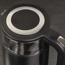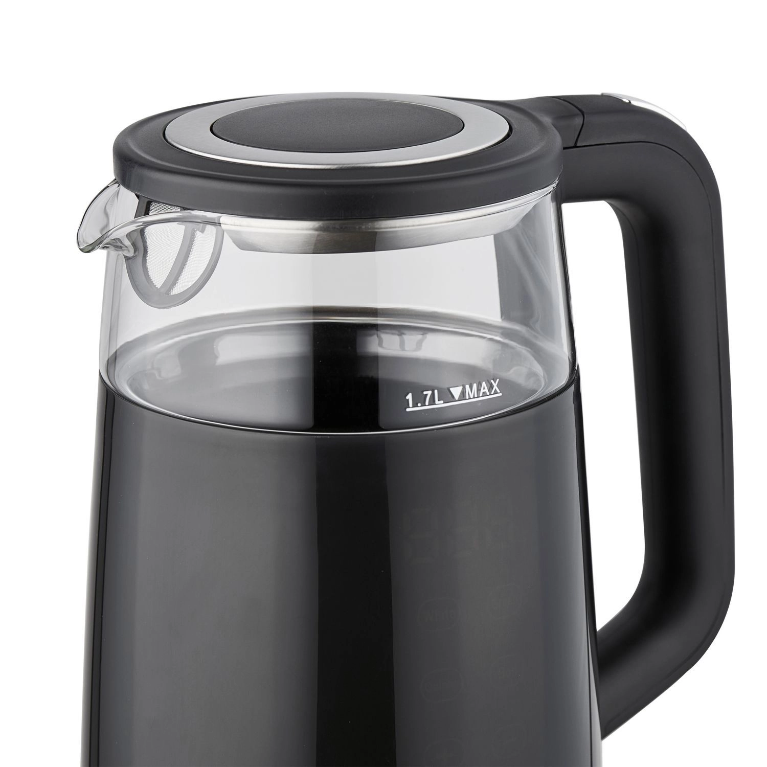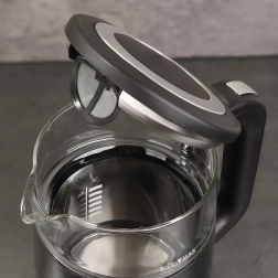 Det gennemsigtige glas gør det nemt at kontrollere vandet, det fine netfilter fanger aflejringer, og den isolerede yderside forbliver kølig at røre ved for øget sikkerhed.