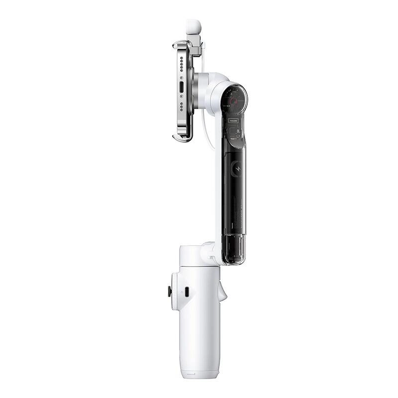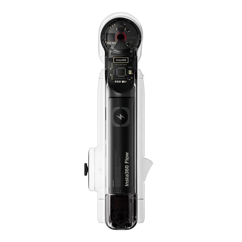 Den indbyggede selfiestang (215 mm) og stativ udvider de kreative muligheder. Med et 2900 mAh batteri klarer Flow op til 12 timers optagelse og kan oplade din telefon.