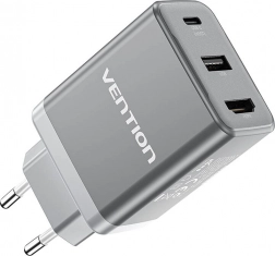 Den kompakte væglader fra Vention med GaN-teknologi kombinerer hurtig PD-opladning op til 65 W, porte USB‑C + USB‑A og HDMI 4K@60 Hz. Oplad op til tre enheder samtidigt, tilslut en ekstern skærm og nyd universel kompatibilitet med Windows, macOS, Android m.fl. – sikkert takket være intelligent beskyttelse mod overspænding, overophedning og kortslutning.