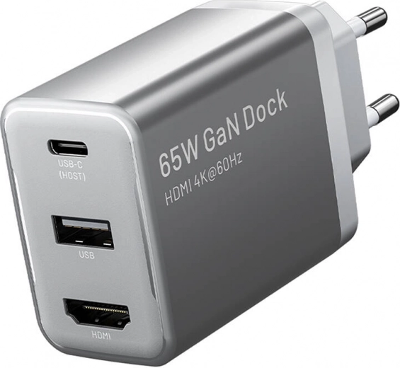 Vention GaN Switch Dock-laderen er en elegant og bærbar løsning til arbejde og rejser. Takket være USB‑C med Power Delivery 65 W oplader den hurtigt laptop, tablet og telefon, USB‑A er velegnet til tilbehør, og via HDMI 2.0 tilslutter du en skærm i op til 4K ved 60 Hz for jævnt billede og højere produktivitet.