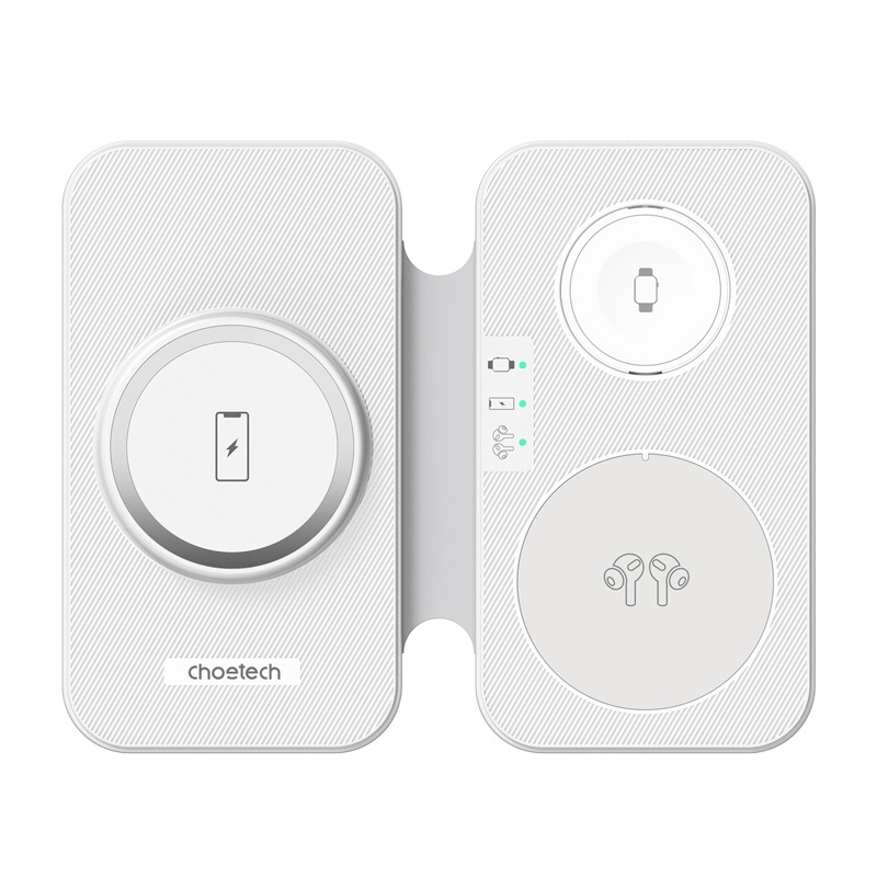 Oplad tre enheder på én gang – telefon, ur og høretelefoner – og spar både tid og plads på skrivebordet. Den sammenklappelige konstruktion fungerer som en praktisk stander, så du nemt kan se video eller foretage videoopkald under opladning. En kraftig spole sikrer stabil og hurtig trådløs opladning med høj effektivitet.