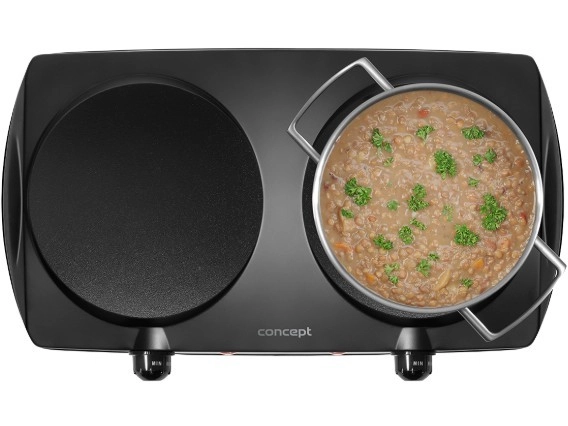 Leder du efter en pålidelig kogeplade til et mindre køkken, sommerhus eller studielejlighed? Den dobbelte elektriske kogeplade CONCEPT VE3060 leverer 2500 W og to uafhængige kogezoner med trinløs regulering. Hurtig opvarmning og stabil temperatur gør daglig madlavning nem uden unødige ventetider.
