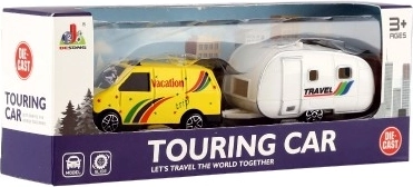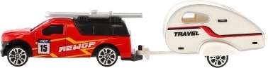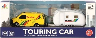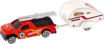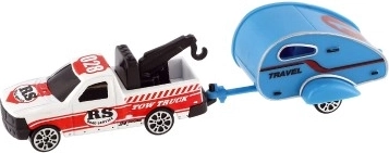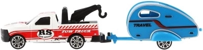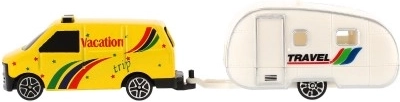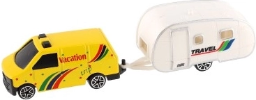 Vi præsenterer et legetøj, der sætter gang i børns fantasi. Bil med mini-campingvogn er lavet af metal og plast, hvilket sikrer lang holdbarhed og robusthed. Den samlede længde er 14 cm, hvilket gør den til en ideel ledsager til daglig leg og på farten.