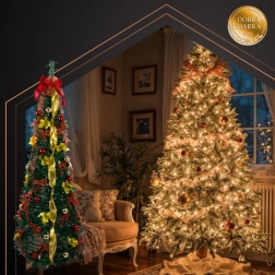 Nyd julemagien uden ekstra arbejde. RUHHY-træet har en smart pop-up konstruktion, så du kan sætte det op og pakke det sammen på ingen tid. Den elegante kombination af guld og rød virker festlig og tidløs og passer perfekt i stuen, på kontoret og i mindre lejligheder.