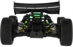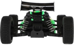 2,4 GHz-radiosystemet med rækkevidde op til 100 m giver glat, interferensfri styring, mens den fuldt funktionelle affjedring med kraftige dæmperaksler og mulighed for progressiv justering tilpasser sig de fleste terræner. Der medfølger to 7,4 V 850 mAh (15C) batterier for længere kørsel og USB-opladning; senderen kræver 4× AA (medfølger ikke).