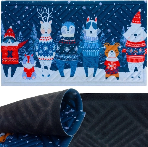Julemåtten RUHHY kombinerer funktion og design – det legende vinterprint med festlige motiver byder gæster velkommen allerede ved døren, mens den solide konstruktion hjælper med at holde indendørs områder rene. Den kompakte størrelse 75 × 45 cm passer perfekt foran hoveddøren i hjemmet, på kontoret eller i butikken.