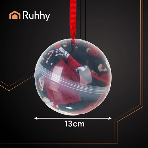 Giv en praktisk og stilfuld gave. RUHHY-sættet indeholder tre forskellige par julesokker med motiver som rensdyr, træ og Sankt Nikolaus. Den bløde bomuld med elastiske fibre er behagelig at røre ved, åndbar og holder faconen. Den dekorative kugle med ophæng giver gaven ekstra flair, og efter højtiden kan den bruges til småting.