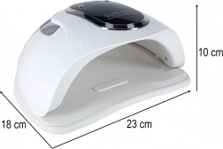 Det praktiske kontrolpanel tilbyder forudindstillede tider 10 s, 30 s, 60 s og 99 s (low heat), som reducerer varmechok ved følsomme negle. Integreret bevægelsessensor starter lampen automatisk, når hånd eller fod føres ind, hvilket fremskynder arbejdet i salon såvel som hjemme.