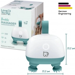Massageapparatet til hunde og katte Buddy giver dit kæledyr beroligende pleje hver dag. Den delikate æltende massage hjælper med at reducere stress, fremmer afslapning og styrker relationen mellem menneske og dyr. De bløde silikonehoveder masserer uden at trække eller vride pelsen – perfekt til sensitiv hud og fin pels.