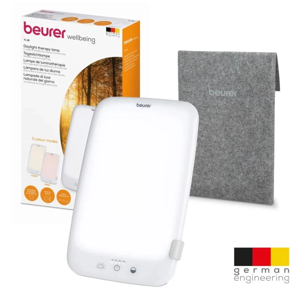 Styrk din energi og dit humør selv i perioder med mangel på sollys. Lysterapilampen BEURER TL 35 bruger LED-teknologi til jævnt og intensivt dagslys med en ydelse på op til 10.000 lx i en afstand på ca. 13 cm. Den er ideel til både hjemmet og kontoret og giver en behagelig, stabil belysning uden flimmer.