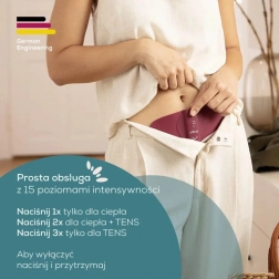 Gør menstruationsdagene mere komfortable med en kombination af TENS og skånsom opvarmning, der sammen reducerer smerteopfattelsen i underlivet. Enheden stimulerer nervefibre gennem huden, fremmer frigivelsen af endorfiner og giver effektiv og naturlig lindring uden medicin.