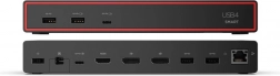 Lenovo ThinkPad USB4 Smart Dock 5500 er en moderne dokningsstation designet til problemfrit arbejde på kontoret og på farten. Takket være USB4 med 40 Gb/s båndbredde tilslutter du nemt eksterne skærme med højere opløsning og opdateringshastighed, overfører data hurtigt og oplader samtidig din bærbare computer.