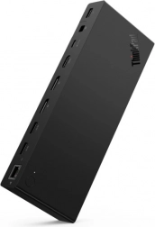 Til virksomhedsbrug bringer løsningen Lenovo Accessories Fleet Manager (LAFM) drevet af AWS forenklet administration af tilbehør og dokningsstationer i hele flåden. Det kompakte kabinet, det brede udvalg af porte (USB‑A, USB‑C, DisplayPort/HDMI, Ethernet) og den medfølgende 135 W adapter sikrer stabil strømforsyning selv til krævende brug.