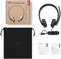 Lenovo Wired VoIP Headset 5000 leverer klar kommunikation og pålidelighed til daglige arbejdsopkald, møder og webinarer. Med certificering til Microsoft Teams og nem tilslutning via USB‑C (med USB‑A‑adapter i pakken) fungerer det med det samme uden besværlig opsætning.