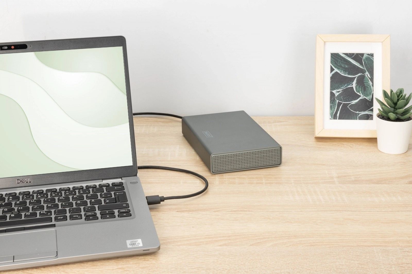 Elegant aluminiums-kabinet til 3,5" SATA-diske tilbyder hurtig USB 3.0 op til 5 Gbit/s, kapacitet op til 16 TB og pålidelig køling. Takket være plug & play, LED-aktivitetsindikator og tænd/sluk-knap er det ideelt til backup og udvidelse af lagerplads på Windows, macOS og Linux.