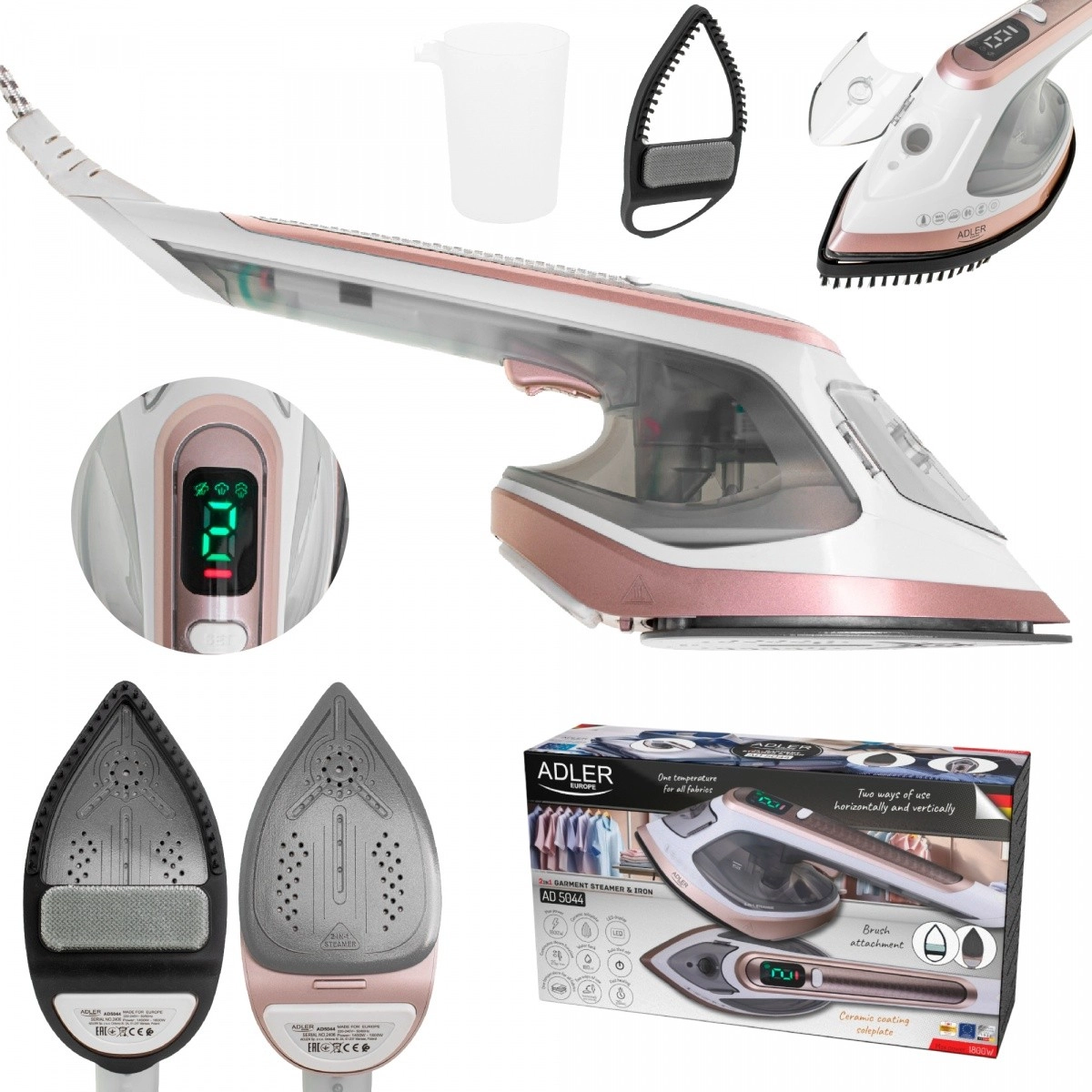 Gør tøjplejen enklere med den multifunktionelle hjælper ADLER AD 5044. Den kombinerer damper og strygejern 2 i 1 til både vandret og lodret strygning, har hurtig opvarmning på 20 s, én sikker temperatur til alle tekstiler, LED-display og jævn dampudgang med mulighed for regulering. Den keramiske strygesål med spids sikrer præcis strygning, børste-tilbehøret fjerner fnug og hår, og automatisk sluk øger sikkerheden.