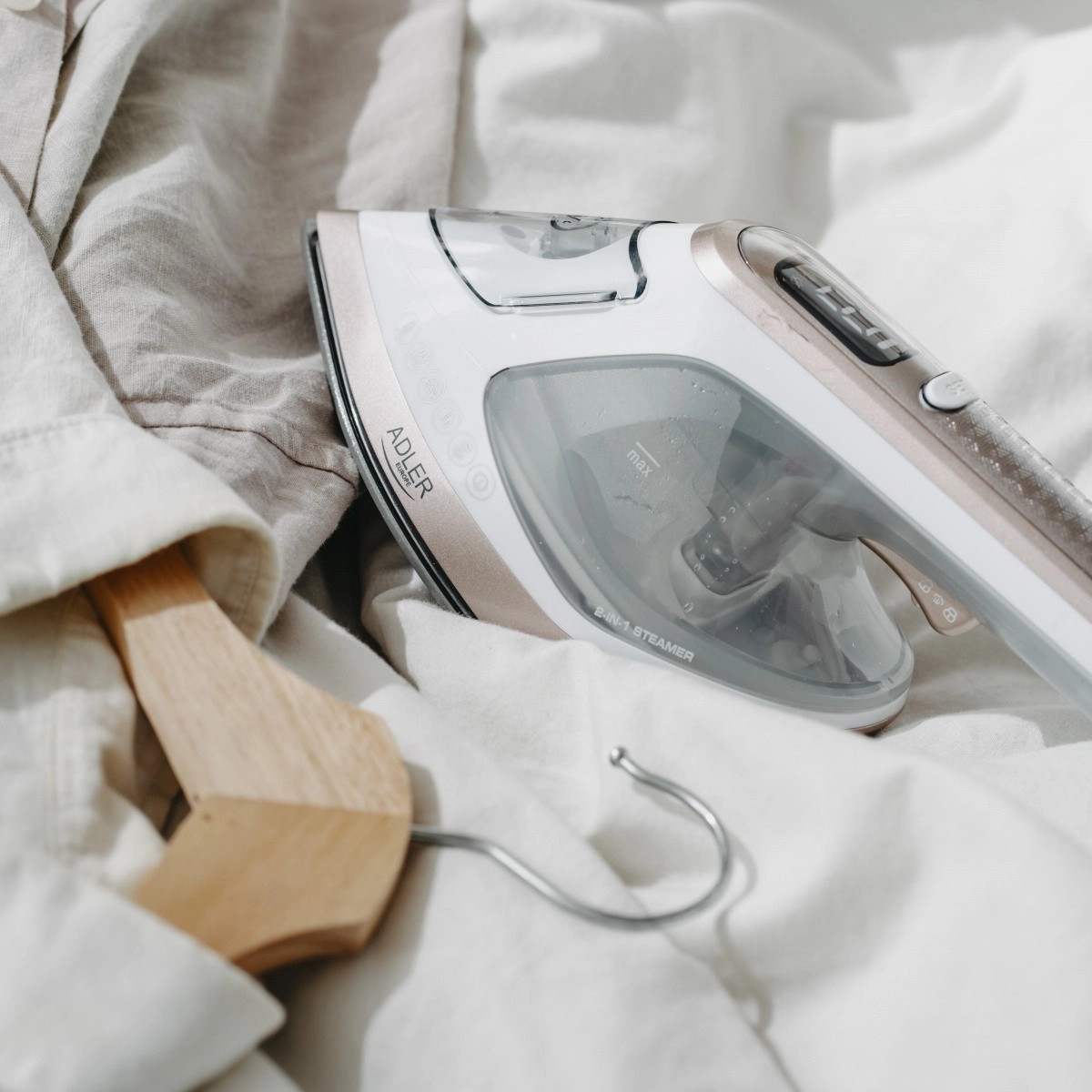 - Opfriskning af tøj, gardiner og sarte tekstiler, fladestrygning