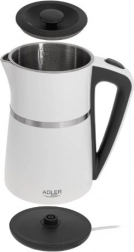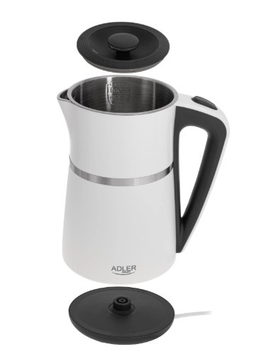 ADLER AD 1355-kedlen tilbyder hurtig opkogning, stille drift og sikker brug takket være dobbeltvæggen. Det indre i rustfrit stål sikrer ren vandsmag og nem vedligeholdelse, mens det flade varmelegeme fremskynder opvarmningen og gør afkalkning lettere.