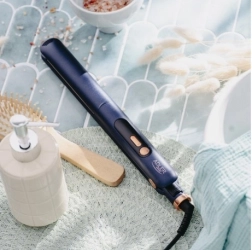 De afrundede kanter og bevægelige plader 25 × 110 mm gør det let både at glatte, lave let indadbøjning eller skabe bølger. Den tydelige LED-skærm viser den aktuelle temperatur, og enheden er klar til brug efter cirka 80 sekunder. For maksimal komfort og sikkerhed er der arme-lås, automatisk sluk og kølige spidser.