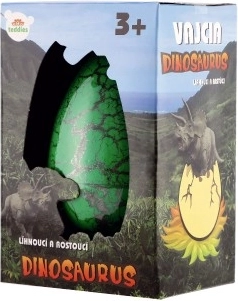 Dette farverige maxiæg vil glæde både drenge og piger. I ægget gemmer der sig en overraskelse i form af en dinosaur. For at dinosauren kan klække, skal ægget nedsænkes i en skål med lunkent vand. Efter cirka 24 - 48 timer vil skallen sprække, og dinosauren begynder at komme ud. Børnene kan dermed gradvist følge, hvordan dinosauren klækkes fra ægget. Bliver det en T-Rex, en stegosaurus eller en brontosaurus? Eller en helt anden dinosaur? Det finder de ud af efter cirka 72 timer.