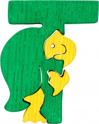 Det indlæggende bogstav T med en lille skildpadde er et ideelt redskab til den første introduktion til alfabetet. Delene glider let på plads, og takket være den robuste udførelse i massivt træ tåler det daglig leg. Overfladen er behandlet med børnesikre farver.