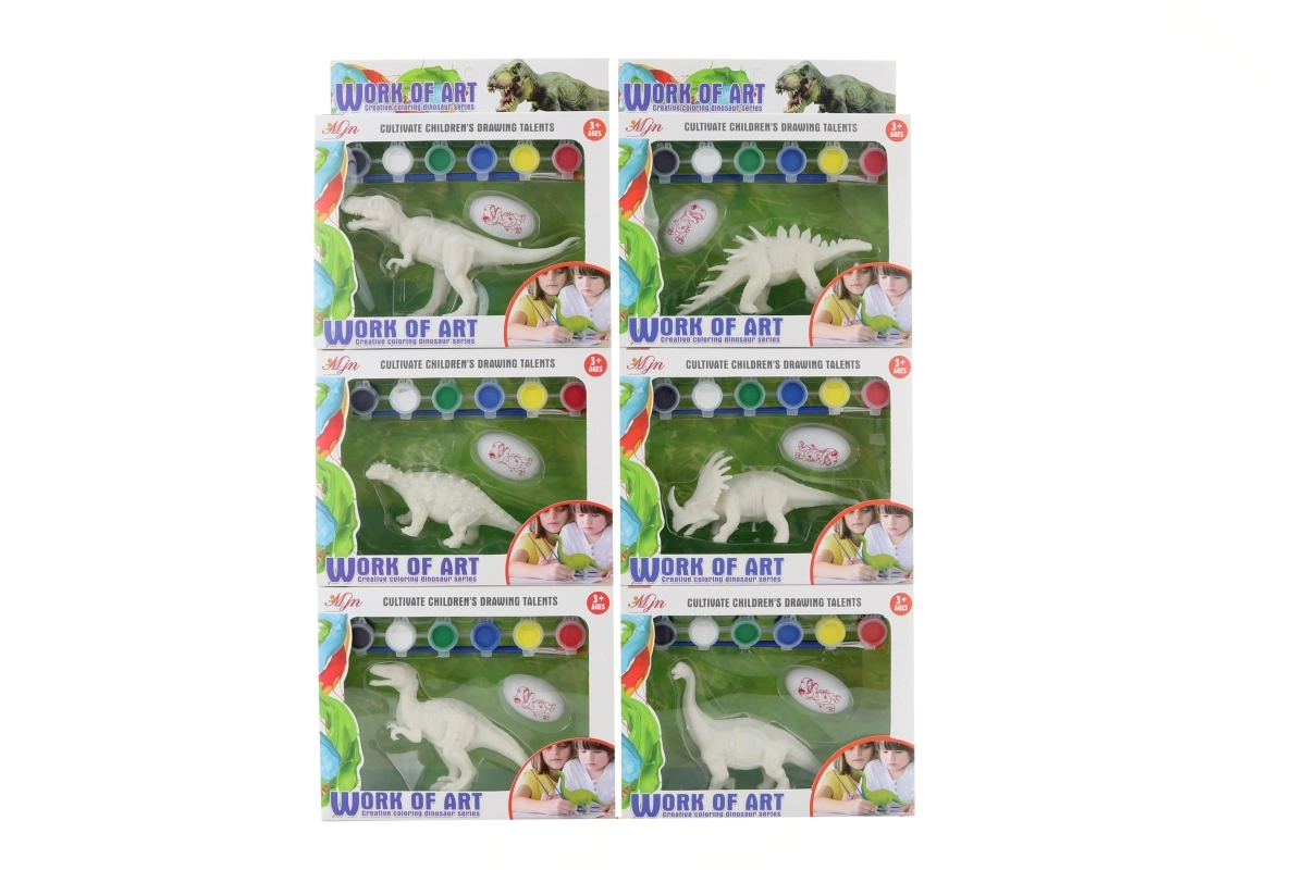 Dette malesæt med en dinosaure er et godt valg for små kunstnere. Med de medfølgende farver og pensel kan børn nemt dekorere dinosauret efter deres fantasi. Ægget kan gemme det færdige værk eller bruges som en del af legen.