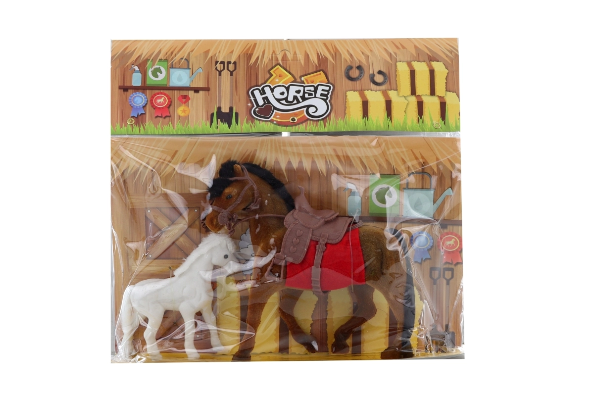 Dette søde sæt indeholder to heste i forskellige størrelser for endnu mere varieret leg. Den ruskindsagtige overflade giver figurerne en behagelig følelse og et mere realistisk udseende, mens det robuste plast sikrer lang holdbarhed. Takket være de kompakte pakkemål er det ideelt til rejser og som en lille gave.