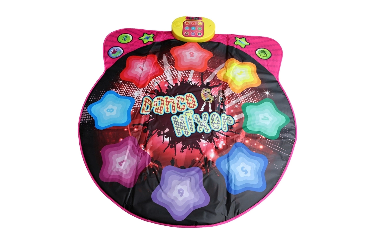 Denne interaktive dansemåtte forvandler ethvert børneværelse til en lille dansescene. Med Bluetooth kan du nemt afspille yndlingssange fra telefon eller tablet, og børnene kan danse i takt på de 8 følsomme dansekontakter. Betjeningen er enkel, med ikoner for dansemodus, Bluetooth og lydstyrke.