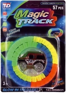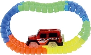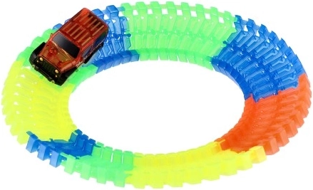 De neonfarvede banestykker lyser flot i mørke, og takket være den fleksible konstruktion kan du bøje dem frit og samle nye ruter. At ændre banen tager kun et øjeblik.