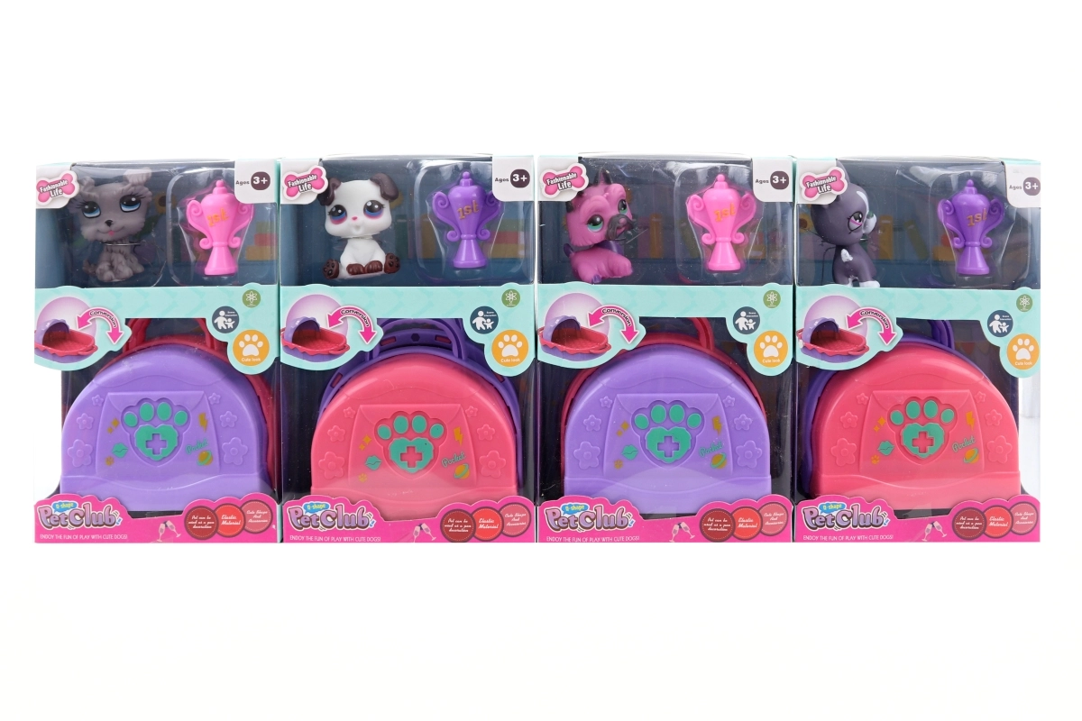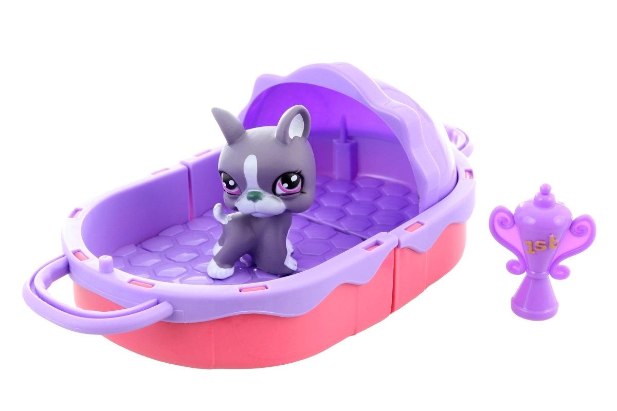 Oplev glæden ved at passe kæledyr med dette muntre sæt. Hver pakke indeholder et lille dyr (ca. 6 cm), en praktisk kuffert der foldes ud til en seng, samt en pokal til vinderen. Takket være det kompakte design og den holdbare plast er legetøjet ideelt både hjemme og på farten.