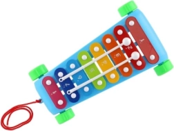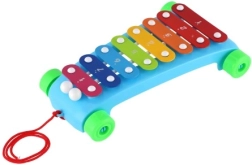 Stimuler børns fantasi med denne træk-xylofon på 24 cm. Den har 8 farvede metaltangenter, 2 køller og hjul med snor for nem trækkefunktion. Et godt valg til musikalsk kreativitet, koordinationsfærdigheder og leg på farten.
