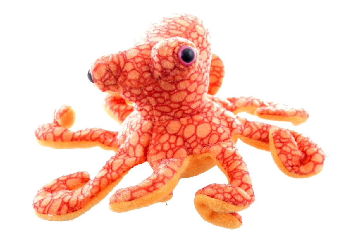 Denne orange plysblæksprutte glæder både børn og forældre med sin kvalitet og bløde materiale. Den kompakte størrelse på 17 cm er ideel til tremmeseng, klapvogn og på farten. De stabiliserende kugler indeni hjælper med, at bamsen sidder pænt og bevarer formen.