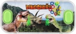 Dette populære lommeformat vandspil med dinosaurer er den perfekte ledsager i bilen, på ferien og til hyggestunden derhjemme. Med et tryk på de to sideknapper sætter du ringene i bevægelse i vandet og forsøger at få dem på pindene. Den enkle idé og det attraktive motiv sikrer skærmfri underholdning.