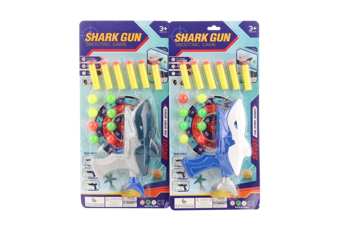 Giv børnene glæde med en pistol i et originalt hajmotiv, der skyder både plastbolde og skud med skum. Takket være den lette konstruktion og enkle betjening er den ideel til børn fra 3 år. De bløde projektiler sikrer mere sikker leg og sjov både derhjemme og i haven.