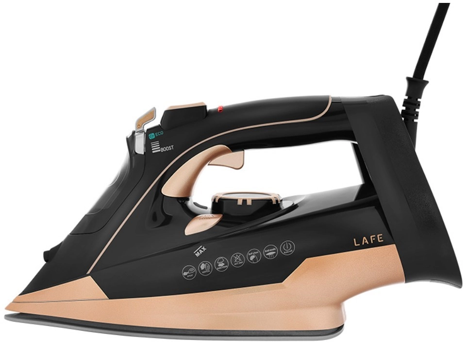 Kraftigt dampstrygejern LAFE VaporMax med effekt på 3000 W varmer hurtigt op og klarer genstridige folder uden besvær. Det tilbyder en keramisk strygesål for glidende bevægelse, kontinuerlig damp 10–25 g/min, dampstød 80 g, en 320 ml vandtank samt sikkerhedsfunktionerne Auto Stop, Anti-Drip, Anti-Calc og Self Clean.