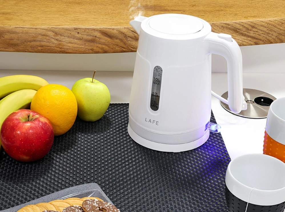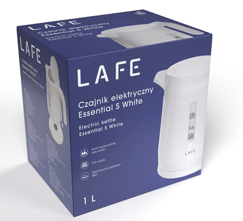 Den praktiske og pålidelige elkedel LAFE Essential S i hvid leverer hurtig vandkogning, enkel betjening og et rent, moderne design. Takket være de kompakte mål passer den perfekt på køkkenbordet, og kapaciteten på 1 l er ideel til te, kaffe eller instant suppe.