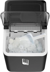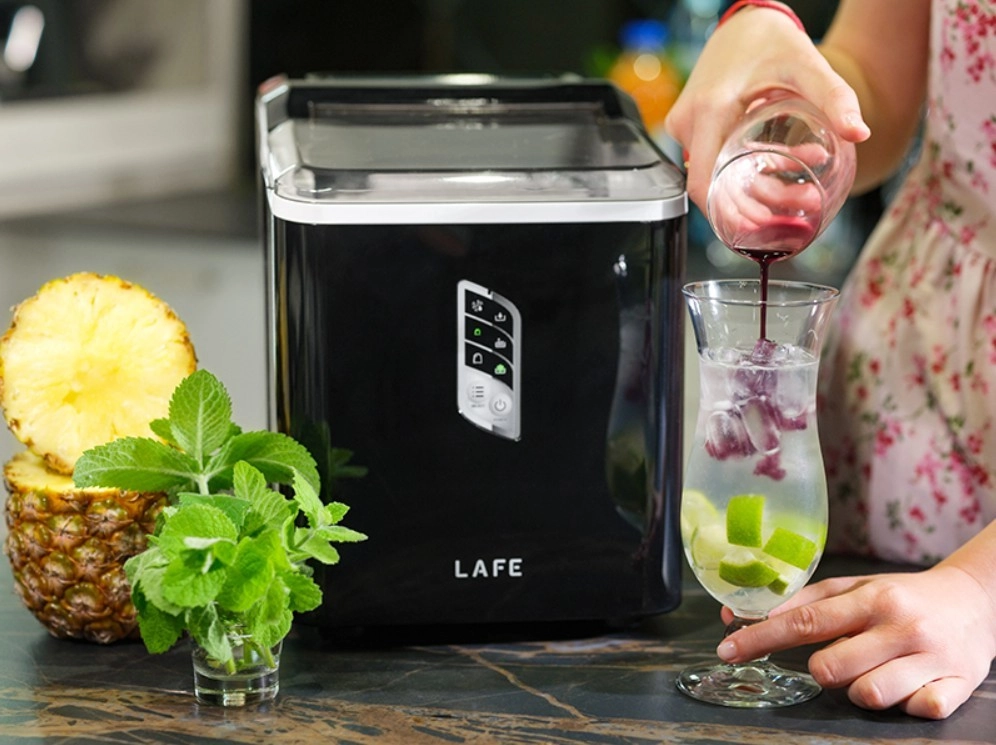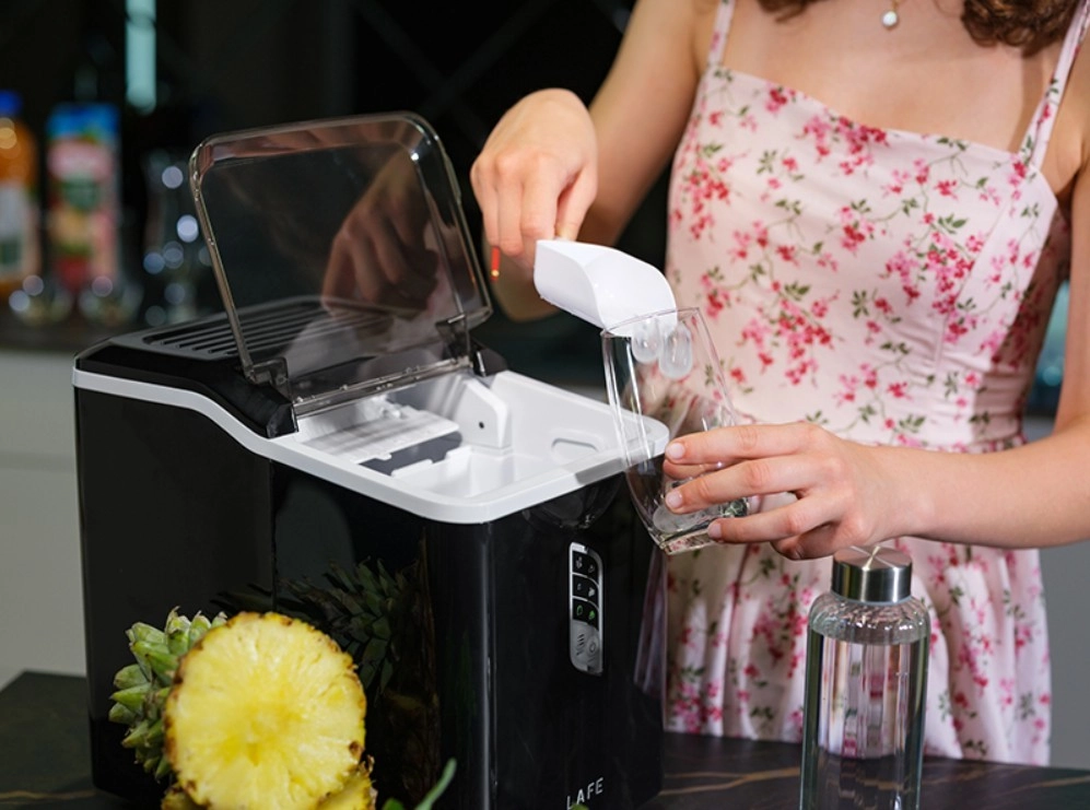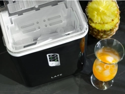 Med en tankkapacitet på 1,5 l og en ydeevne på op til 12 kg/24 t dækker den behovene til familiesammenkomster såvel som daglig brug. Selvrensningsfunktionen holder enheden hygiejnisk ren uden besvær, og elektronisk betjening med indikatorer sikrer intuitiv anvendelse. Der er også mulighed for at indstille terningstørrelsen til cocktails, lemonader og longdrinks.