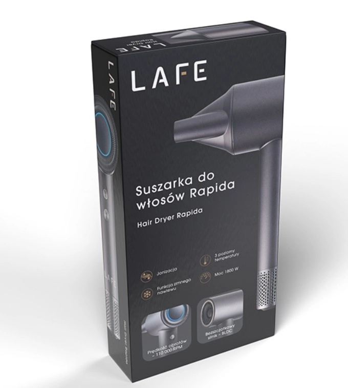 LAFE Rapida hårtørrer kombinerer den nyeste teknologi med nem betjening for hurtig og præcis hårstyling. Den kraftige børsteløse BLDC‑motor giver høj luftgennemstrømning, lavere støj og lang levetid, mens ionisering minimerer krus og giver håret et glat, strålende udseende.