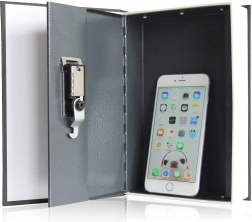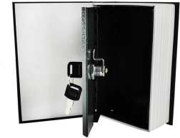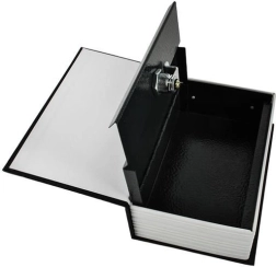 Det smarte bogformede pengeskab er designet til at falde i ét med resten af bøgerne i reolen. Det udvendige omslag efterligner en rigtig bog, mens der indeni gemmer sig en solid stålkassette med mekanisk nøglelås. Ideelt som diskret skjul til penge, smykker, nøgler, dokumenter og andre små værdigenstande.
