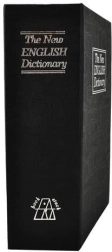 Omslag og ryg efterligner troværdigt bogindbindingen The New English Dictionary, så pengeskabet ikke tiltrækker sig opmærksomhed på hylden og falder i ét med de øvrige titler.